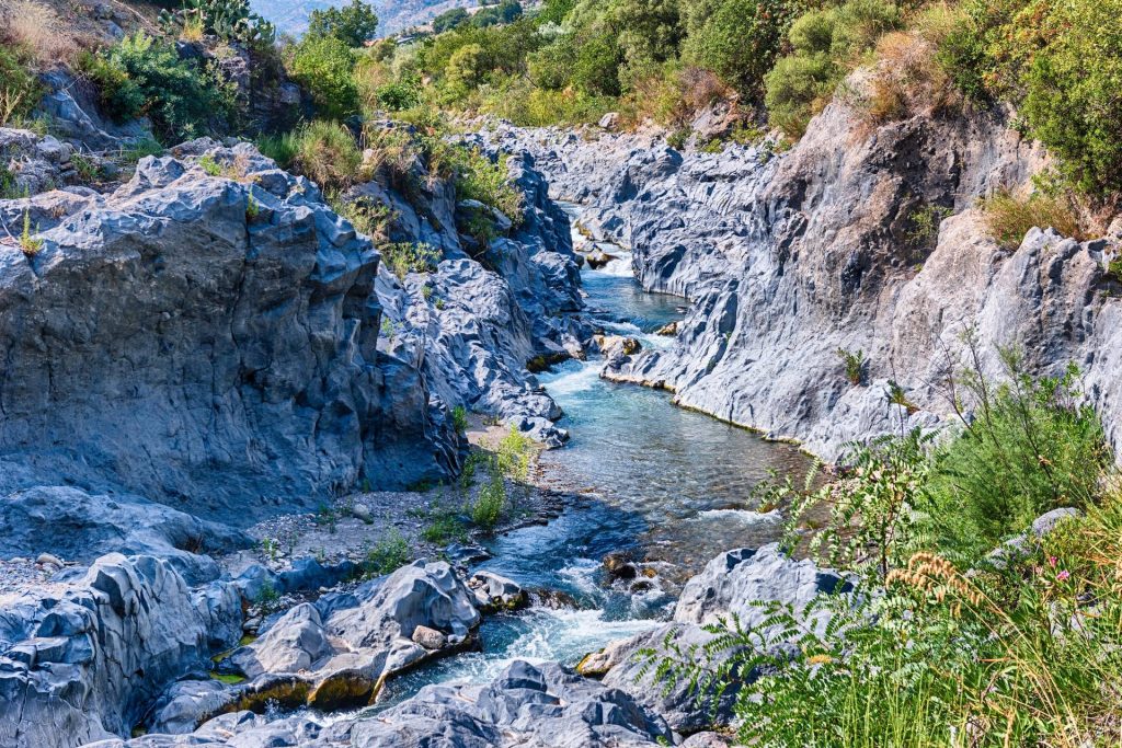 L’Alcantara scorre tra immense rocce di origine vulcanica antichissime, ben precedenti alla formazione dell’Etna, lavorate dall’acqua. Andando avanti nel percorso, seguendo il letto del fiume si arriva alle suggestive gole dell’ Alcantara dove si potranno ammirare i basalti colonnari di origine vulcanica. Il contrasto tra la trasparenza delle acque e la roccia vulcanica è la particolarità di questo ambiente naturale.